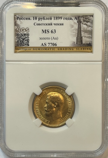 Вы всегда можете купить или продать, а также узнать текущую стоимость монеты - 'Золотая монета 10 рублей Николай II 1899г., в слабе NGS MS 63' в г.Минск (Минск). У нас Вы получите полную и необходимую консультация от квалифицированных специалистов и профессионалов, работающих на рынке инвестиций в драгметаллы уже долгое время. Мы стараемся предложить нашим клиентам лучшие цены выкупа и продажи на рынке (с минимальным спредом), а также гарантируем конфиденциальность всех проводимых сделок.